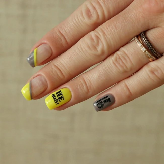 подложка под френч должна иметь естественный оттенок, надпись можно наносить на гель-лак любого цвета;