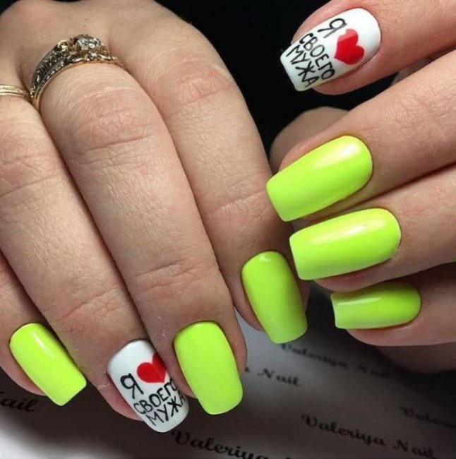 Если яркость неонового гель-лака смущает, то ноготь можно покрыть матовым топом. Он немного уберёт насыщенность и позволит получить стильный дизайн на ногтях.