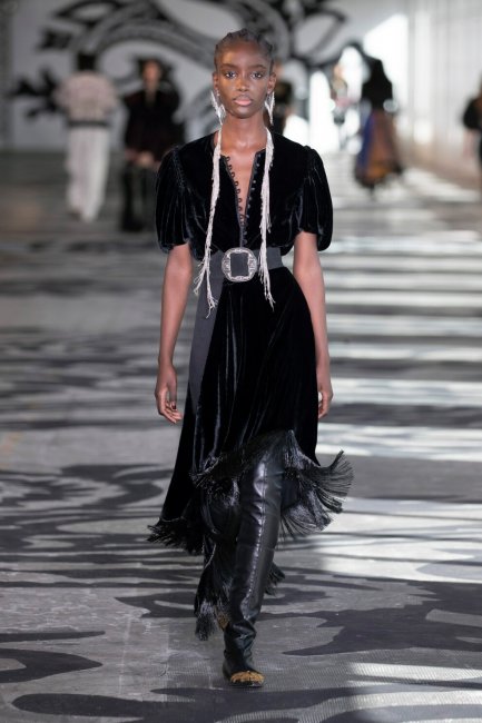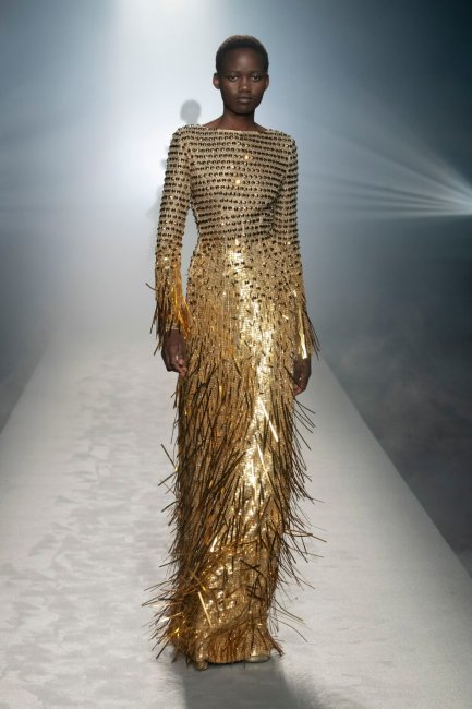RokhБлестящая бахрома - один из главных трендов сезона осень-зима 2021/2022. Дизайнеры в своих коллекциях уделили ей особое внимание: декорировали шелковыми ниспадающими нитями подолы платьев, щедро украсили рукава, представили образы со сверкающими нитями в стиле 1920-х годов и приправили вечерние образы вкраплениями золотой и серебрянной бахромы. Найти подобное платье достатчно просто в этом сезоне. Так, Rokh показали асимметричное платье, декорированное несколькими ярусами мерцающей бахромы, Alexandre Vauthier сделали ставку на игривое платье-кейп в длине мини, а Etro усыпали подол бархатного черного платья кокетливой бахромой.