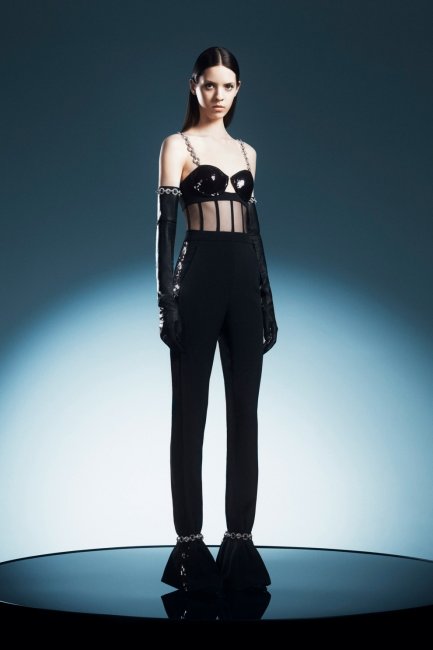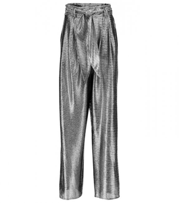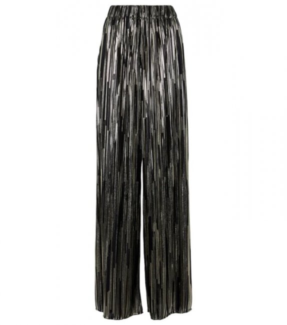 Alberta FerrettiВещи в оттенках драгоценных металлов - хит этого сезона. Берите на заметку эту модную тенденцию и выбирайте диско-брюки в золотом цвете Alberta Ferretti, щедро декорированные кристаллами, пайетками и блестящей бахромой. Настолько эффектные брюки легко составят конкуренцию даже самому блестящему платью еа светской вечеринке. Комбинируйте их с лаконичным верхом в виде черного свитера, топа или водолазки, чтобы не перегружать образ. По такому же принципу носите брюки с пайетками Celine, металлизированную модель Coperni и пары, украшенные разноцветными кристаллами Alexandre Vauthier.