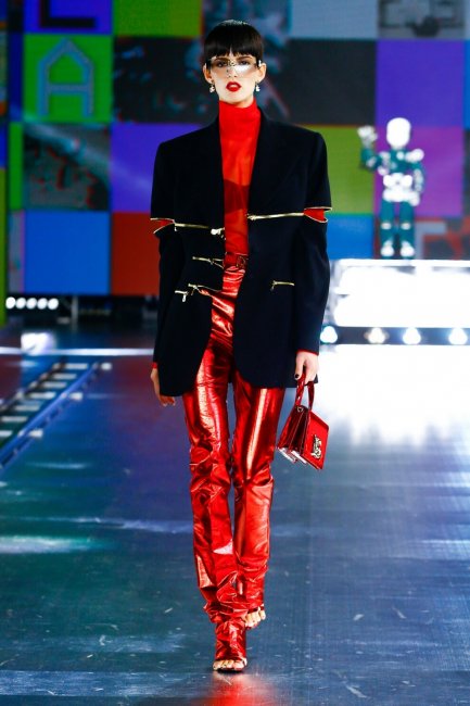 Prabal GurungЗначительная роль в новых коллекциях осень-зима 2021/2022 досталась глянцевым брюкам из лакированной кожи, в которых можно пойти на самую гламурную вечеринку. Носите их с черным жакетом и полупрозрачным гольфом по примеру Dolce & Gabbana или комбинируйте с любимым свитером, вдохновившись коллекцией Balmain. Чтобы создать элегантный новогодний наряд, выбирайте летящие брюки bootcut в красном оттенке Prabal Gurung или атласную белоснежную модель с высокой талией Fendi. Не забывайте про бархатные брюки-бананы Giorgio Armani, женственную модель David Koma с лампасами из пайеток и комбинированные брюки Chanel.
