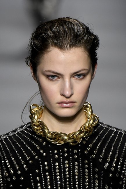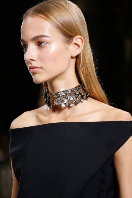 В новом году чокеры не используются как отдельный элемент образа, а становятся главным украшением. Если еще недавно они нежно и ненавязчиво дополняли образ, то теперь, чем массивнее и крупнее чокер, тем вы больше будете соответствовать веянию моды. Чокеры элегантно смотрятся на одежде с глубокими вырезами.