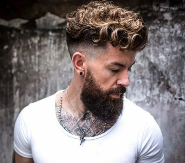 Для кудрявых волос барберы рекомендуют квифф с челкой. В этом случае создается объемная макушка и длинная челка. Они органично сочетаются с короткими висками и подбритым затылком. Челку часто зачесывают набок. У мужчин, которые имеют вьющееся от природы волосы, будет привлекательно и оригинально смотреться ухоженная борода.