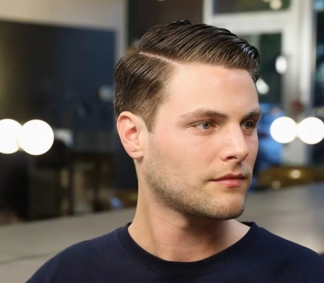 Для более классического имиджа стоит сочетать британку с длинной челкой, выбритыми висками и небольшой бородой. Она подходит для разных типов лица и для мужчин любого возраста. Ее можно носить без укладки в повседневной жизни и укладывать для посещения торжественных мероприятий, на которых предусмотрен дресс-код.