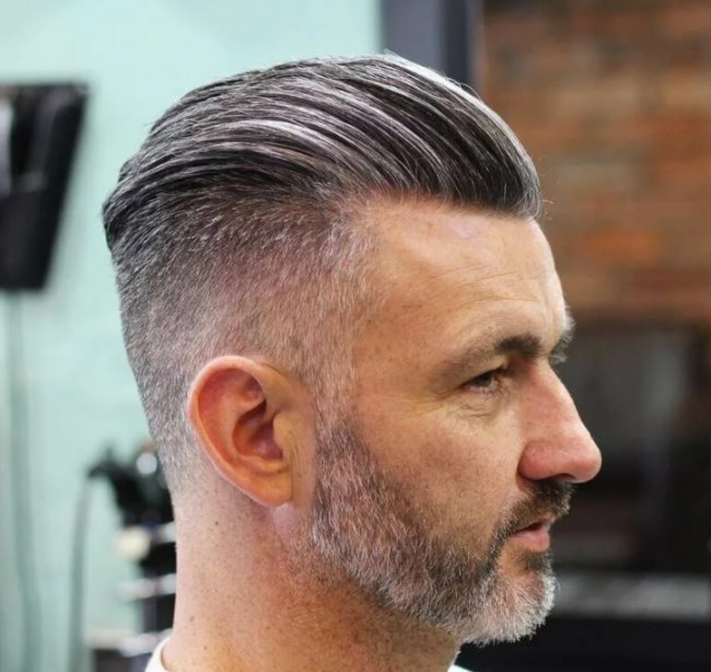 Это классическая хорошо известная стрижка, которая пользуется популярностью уже много лет у мужчин любого возраста. Короткая сзади и по бокам, с более длинной прядью, зачесанной назад сверху, она придаст вам шикарный и яркий вид. Обратите внимание, что этот тип стрижки можно делать на волосах разной длины как на макушке, так и на затылке.