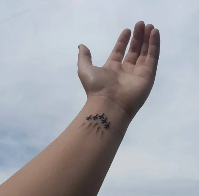 Запястье – распространенный выбор, но это место сопряжено с некоторыми сложностями: здесь красота рисунка определяется мастерством мастера и правильным подбором эскиза для этого расположения. А это означает, что в процессе творчества участвуют двое, успешный результат гарантирован при взаимном согласии.