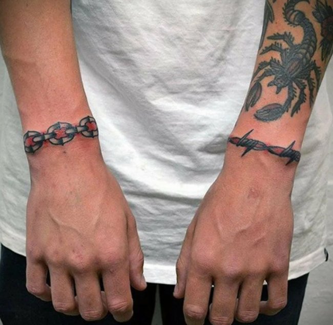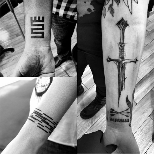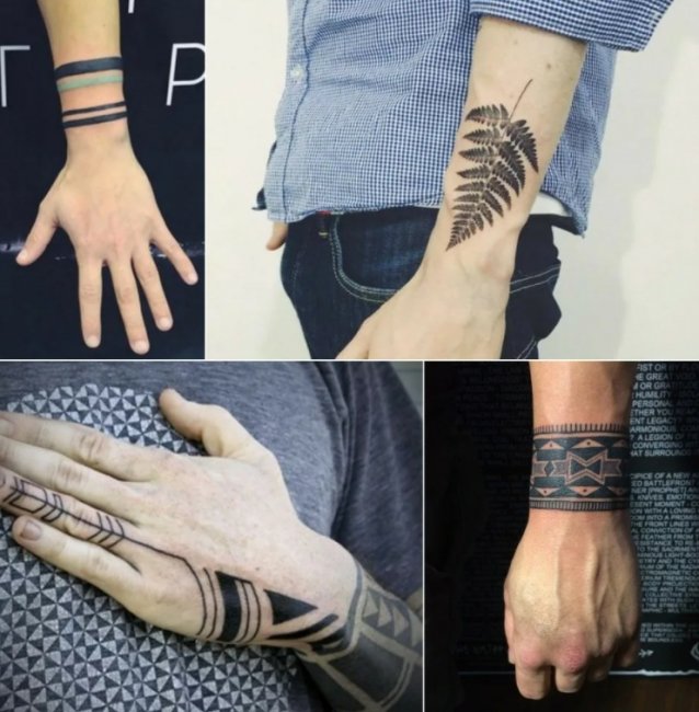 Необязательно со смыслом, потайным, жизненным или философским, в этой категории татуировок для мужчин на запястье присутствуют декоративные решения, стилевые атрибуты, исторические или национальные традиции: