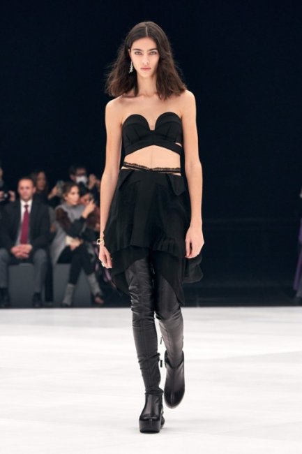 Вряд ли вы видели более длинные молнии, чем в коллекциях Courrèges, Givenchy и Fendi, где сапоги до бедра сочетались с мини-юбками и платьями. Тренд на ботфорты-брюки уже стал обычным явлением в Balenciaga. В этом сезоне Демна Гвасалия представил черные сапоги из лакированной кожи, в которых уже успела появится звезда рекламной кампании - Ким Кардашьян.