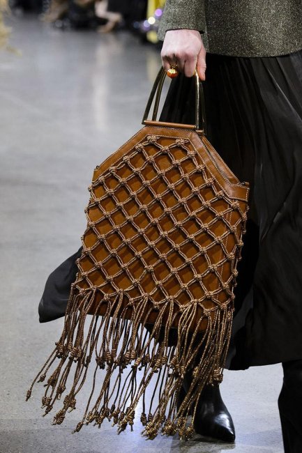 В этом сезоне бахрома достигла размера XXL, иногда даже волочится по земле. В следующем сезоне она не потеряет популярности, но вернется к своему классическому виду. Дизайнеры охватывают практически каждую сумочку, идеально вписывающуюся в стиль бохо. Особого внимания заслуживают плетеные аксессуары, которые отлично подойдут для шоппинга и пляжа.