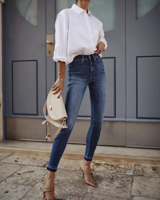 В 2023 году белые джинсы очень популярны, их носят с грубыми ботинками и безразмерными пиджаками. Романтичные натуры могут сочетать брюки с нежными шелковыми блузками. Неоспоримым трендом этого сезона будут джинсы с завышенной талией. С их помощью можно создать полностью белый образ или добавить немного озорного характера при помощи тельняшки.