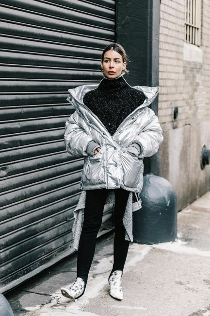 Пуховики с металлическим блеском можно увидеть на обложках журналов и модных показах. Фасон и длина таких изделий не имеет значения, т. к. все внимание акцентировано именно на цвет. Осенью и зимой пуховики с блеском привлекут восторженные взгляды: они переливаются на солнце и идеально сочетаются с любым модным луком.