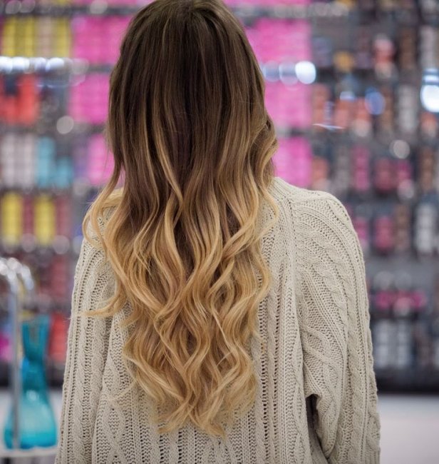 Эффект омбре получается за счет нанесения более светлого красителя на нижнюю половину волос. При этом границу четко не обозначают. Верхнюю половину искусственно затемняют или оставляют как есть. Плавный переход от темного к светлому создает потрясающий визуальный эффект.