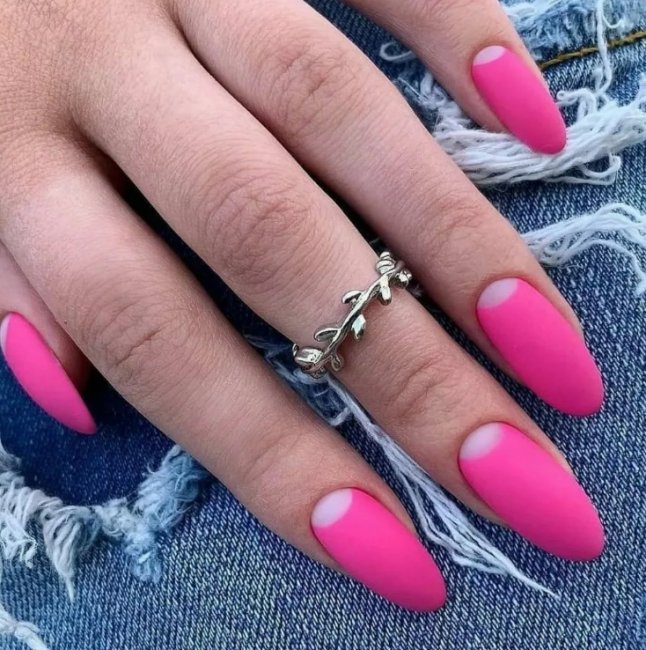 Лучше всего розовый лак наносить на миндалевидные ногти. В моде следующие оттенки: вишневый, маджента и фуксия. Вы также можете выбрать сочетание розового и черного. Такой маникюр придаст вашему образу роскошный вид.