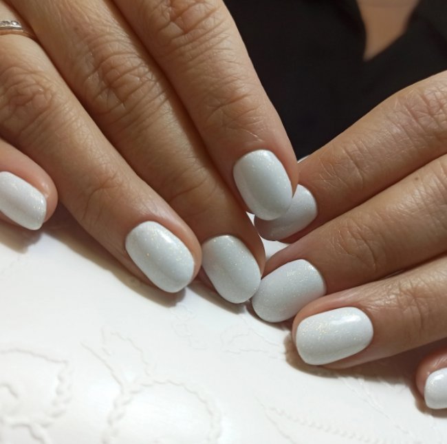 Однотонное выполнение будет смотреться мило, но скромно. Вы можете создать эффектный дизайн при помощи блесток, страз или бусинок. Невероятно красиво будет смотреться розовое омбре. Актуально будет сделать переход от белого лака к розовому.