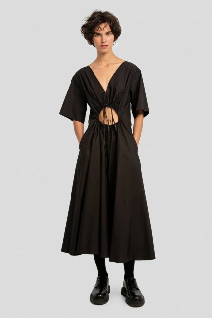 Сукні з пікантними вирізами — модний тренд цього сезону. Сексуальні розрізи, що оголюють косі м’язи преса, вишукані вирізи на ключицях або під грудьми стали головним стилістичним елементом у колекціях дизайнерів. Так, Anna October запропонували коротку трикотажну сукню з фігурними розрізами на талії, A.M.G показали вечірню сукню з провокаційним круглим вирізом, а Litkovskaya зробили ставку на бавовняну сукню, що відкриває верхню частину преса, яка стане вашою улюбленою річчю в повсякденному гардеробі.