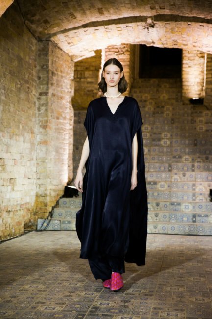 Шовкова сукня — позачасовий елемент гардероба, в якому кожна дівчина почувається по-справжньому елегантною. Вибирайте в цьому сезоні лаконічні slip-dresses у стилі 1990-х, мінімалістичні монохромні образи з довгими рукавами, а також сукні з драпуванням. Носити ви їх можете з босоніжками з тонкими ремінцями, грубими черевиками, гостроносими туфлями та літніми сандалями. У Lake Studio ви знайдете шовкову комбінацію зі складноскроєним драпуванням, а в Elena Burenina — сукню-халтер довжини максі. Небанальний спосіб вписати сукню в білизняному стилі у свій гардероб — поєднувати її зі штанами. Приклад такого образу з’явився в колекції Bobkova.
