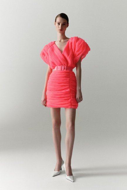 Довжина міні й далі розбурхує фантазію дизайнерів. Віддаючи данину поваги епосі нульових, багато брендів освідчилися в любові коротким сукням, завдяки яким можна продемонструвати стрункі ноги. У колекції J’ammeme з’явилася об’ємна мінісукня з численними брижами й поясом, що окреслює лінію талії. CULNAKED показали екстремально коротку сукню для вечірок, а TTSWTRS — корсетну сукню, ніби з майбутнього.