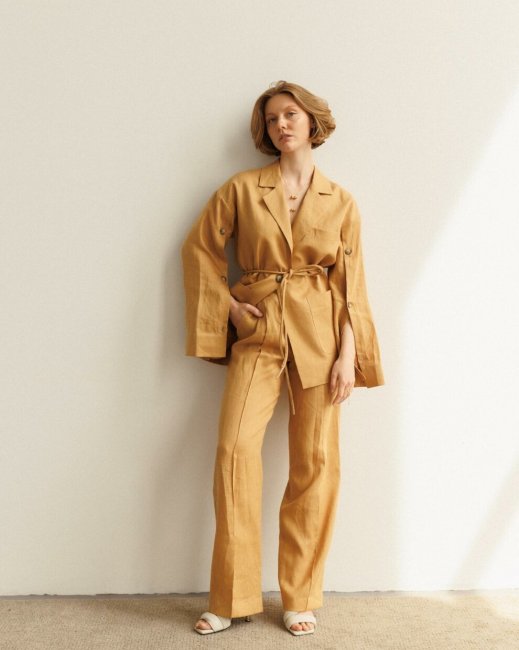 SleeperThe Body WearЦього літа пропонуємо не чекати поїздок на морські курорти й носити лляні костюми в місті. До того ж, у колекції українського бренду The Body Wear з'явився ідеальний елегантний костюм із льону, який вдало доповнить вашу літню капсулу. Широкі штани розслабленого крою та жакет із розрізами на рукавах – небанальний образ, який хочеться жадібно розглядати годинами. Носіть його на ділові зустрічі з босоніжками або сабо, або ж комбінуйте з кедами для піших прогулянок.