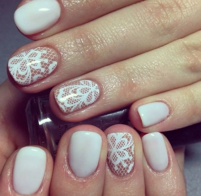 Утонченный кружевной маникюр может быть создан в самых разных стилях. Он смотрится прекрасно на ногтях любой длины. Кружевные мотивы всегда актуальны, выглядят очень нарядно, витиевато и придают некую изысканность общей картине. Такой ход станет отличным дополнением к вечерним нарядам, платьям, блузам и даже свадебному платью.