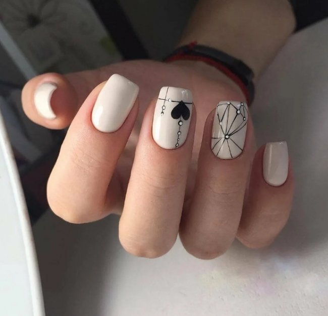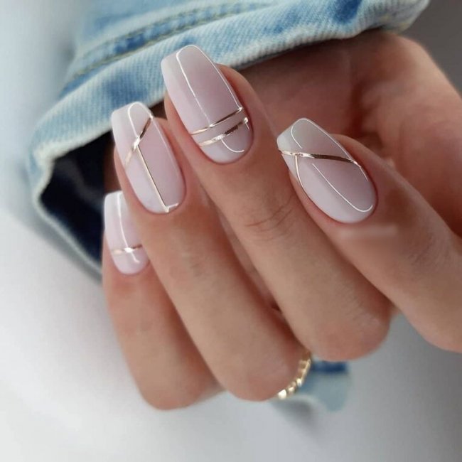 Самые простые варианты — зигзаги, квадраты и полоски. И хотя на словах это звучит как что-то невзрачное, на деле дизайн оказывается очень привлекательным. При выборе стоит обратить внимание на длину ногтей. Такие рисунки лучше наносить на ногти средней длины. Форму можно выбирать любую.