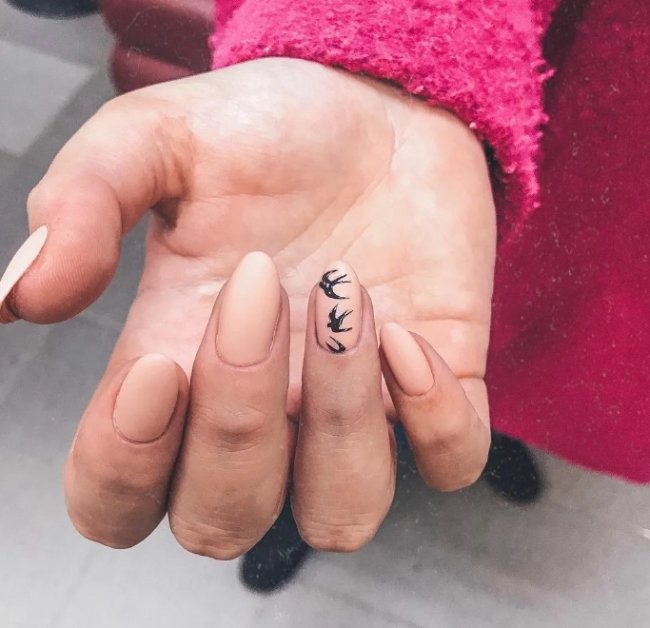 На пике популярности короткая длина ногтей. Она универсальна, поэтому ее можно выбирать на любой случай жизни. Современный дизайн здесь можно создать при помощи акварели. Нарисовать узоры или рисунки можно даже в домашних условиях. Особым спросом пользуются перья, точки, полосы и звездочки.