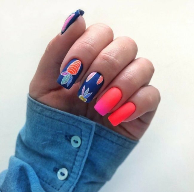 Лето — время для яркого и красочного дизайна. Не бойтесь экспериментировать и воплощать в реальность самые неординарные идеи. В моде тематические рисунки — попробуйте добавить иллюстрации в виде якорей, морских волн или пальм. Также актуален «фруктовый» дизайн: