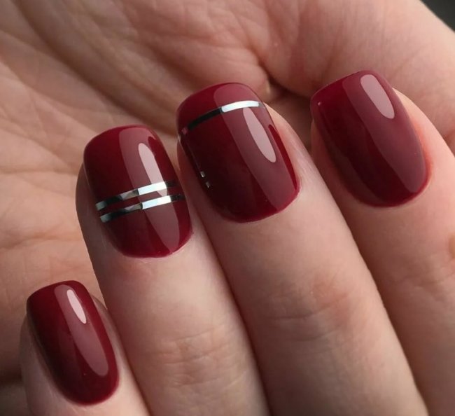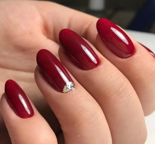Бордовый цвет к лицу элегантным и солидным женщинам, он хорошо подходит под любой образ. Ногти можно оставить в монохромном исполнении, а можно добавить декор: