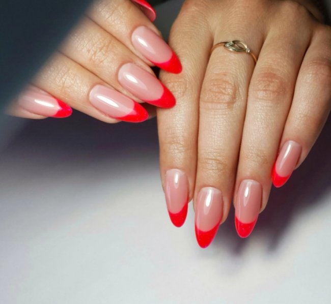 Для любительниц классики идеальным вариантом будет красный френч. Этот вид дизайна ногтей пользуется большим спросом из-за своей простоты и одновременно эффектного вида. «Улыбка» красного цвета смотрится немного необычно, образ приобретает современный и модный вид.