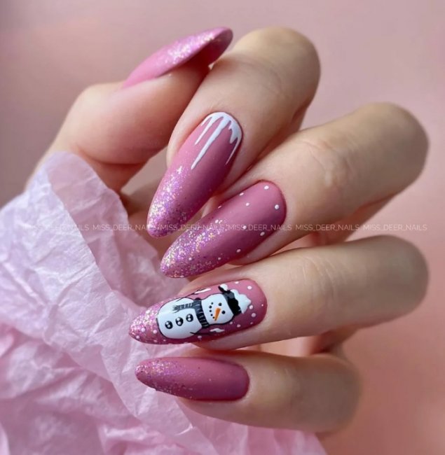 Зимой не обойтись без рисунков с елочками, зайчиками, оленями и снежинками. Наступает время делать новогодний дизайн. На розовом фоне все эти иллюстрации смотрятся лаконично и мило. Также девушки любят рисовать звездочки, завитушки, снегирей, гномов и эльфов.