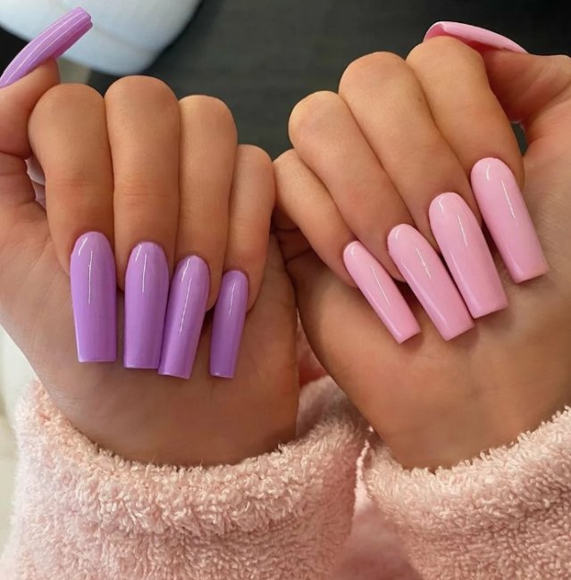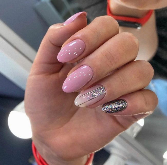 Интересно смотрится дизайн «разные ручки». В этом случае ногти на одной руке покрывают лаком розового цвета, а на другой — любым другим. Итог кажется немного странным, но всегда впечатляет окружающих. Лучшие варианты для тандема:
