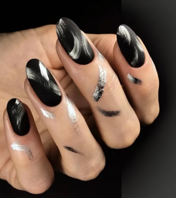 Новинки дизайна черного маникюра с фото