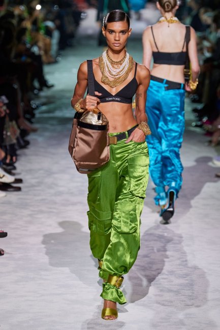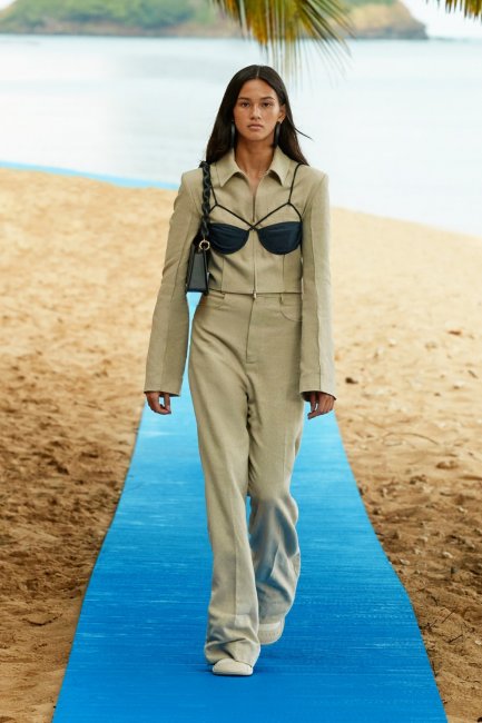 JacquemusСпорт шикНа додачу до топів з м'якого плетіння та трикутних бралетів, цього сезону дизайнери пропонують вибирати бра на гумці, які легко подружити зі спортивним гардеробом. Так, Christian Dior запропонували наймоднішу формулу цього літа – шорти-боксери в парі з бралетом, Off-White скомбінували спортивні широкі штани з коротким топом на блискавці, а Tom Ford додали частку гламуру у свою колекцію, поєднуючи топ на гумці з атласними брюками-карго, багатоярусними прикрасами та босоніжками на високих підборах.