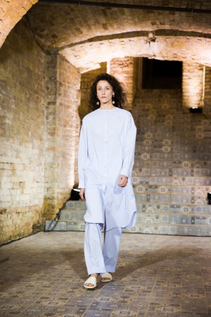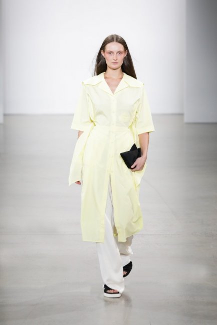 BevzaУкраїнські дизайнери також показали у власних колекціях сукні-сорочки, які вони пропонують носити як соло, так і вдягати в парі з розслабленими штанами. Bevza зробили ставку на пастельно-жовту сукню-трансформер з матроським коміром і застібкою на кнопках спереду, а Bobkova показали мінімалістичну блакитну сукню прямого крою, яку ви можете зібрати на талії за допомогою ременя або носити вільно. Завдяки здатним дихати й натуральним тканинам у таких образах вам захочеться провести весь день.