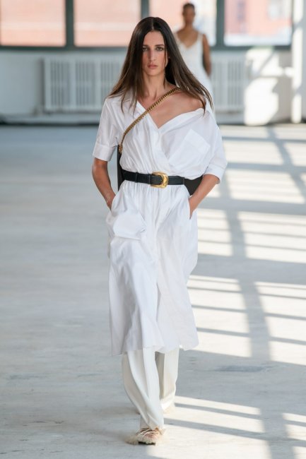 Jonathan SimkhaiЯкщо ви думаєте, що сукня-сорочка це нудна річ, то ви помиляєтесь. У новому сезоні весна-літо 2022 року дизайнери запропонували цікаві стилістичні рішення: небанальні вирізи, мереживні вставки, асиметричний крій, нагрудні кишені, відкладені коміри, розрізи на рукавах, а також мікс фактур і відтінків. Так, у колекції Jonathan Simkhai з’явилася серія суконь сорочкового крою, одна з яких нам особливо сподобалася – біла сукня з тонкої тканини з вирізом на талії та витонченим ланцюжком. Тим часом Jil Sander запропонували лаконічну лимонну сукню, прикрашену зборкою в зоні талії, від якої неможливо відірвати погляду.