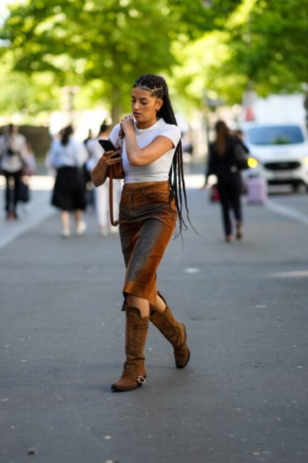 Високі чоботи стали найбільш несподіваним літнім трендом. Під час Тижнів чоловічої моди та Тижня високої моди стрітстайлери доповнювали свої вбрання ковбойськими черевиками, ошатними чоботами до коліна, зокрема, ультрамодними Balenciaga Le Cagole на підборах і з гострим носком. На вулицях Нью-Йорку модні ентузіасти поєднували різноманітні черевики з повністю джинсовими, спортивними чи сексапільними вбраннями, тим самим демонструючи універсальність чобіт для створення будь-якого стильного літнього ансамблю. 1 / 13 2 / 13 3 / 13 4 / 13 5 / 13 6 / 13 7 / 13 8 / 13 9 / 13 10 / 13 11 / 13 12 / 13 13 / 13