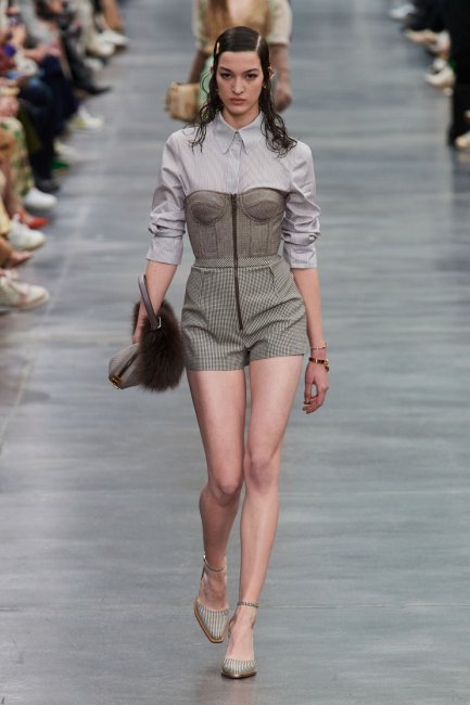ChanelTibiГусяча лапкаПринт гусяча лапка, який ще називають "п’є-де-пуль" і "зуб собаки", у класичному розумінні це ламані клітинки або абстрактні багатокутники в чорно-білому забарвленні. І саме на класику в новому сезоні ставлять дизайнери: Alaїа представили асиметричну мідісукню, а Fendi – ромпер з різнокаліберними клітинками.