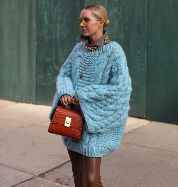 Одним из самых любимых образов девушек считается сочетание оверсайз платья-свитера и ботфортов на каблуке. Многим дамам нравится сочетать свитера крупной вязки с юбкой-карандаш. Это два беспроигрышных варианта, которые максимально отражают женственность.