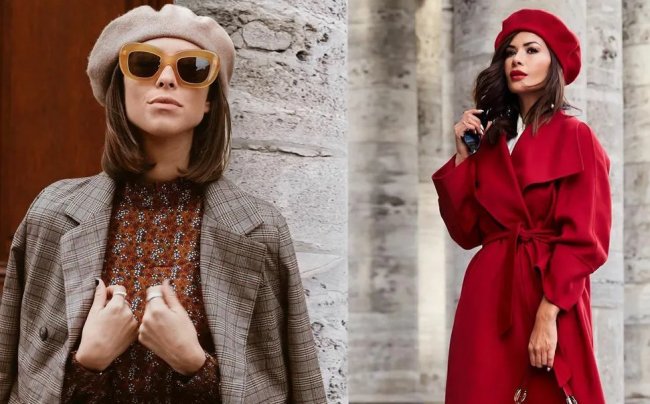 Принято носить береты на распущенные волосы, это нежно и грациозно, создает романтичный «парижский» лук. Гармонично будет смотреться такой головной убор с пальто, шубой. Кожаный берет подойдет к дубленке или пуховику. Куртку-косуху, кожаный тренч отлично дополнит черный берет, а очки и маленькая сумочка подчеркнут образ шикарной дамы. Красный берет выделит смелую обладательницу из толпы, придаст уверенности и шарма.