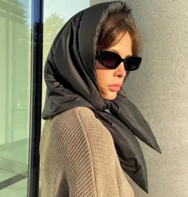 Необычно, экстравагантно выглядят платки и косынки в прохладное время. Этот головной убор из женского гардероба, представленный на фото, поражает своим изяществом. Косынки бывают из теплой ткани, вязаного полотна, кожи, шерсти. Они мягкие теплые, но при этом невероятно красивые, элегантные.