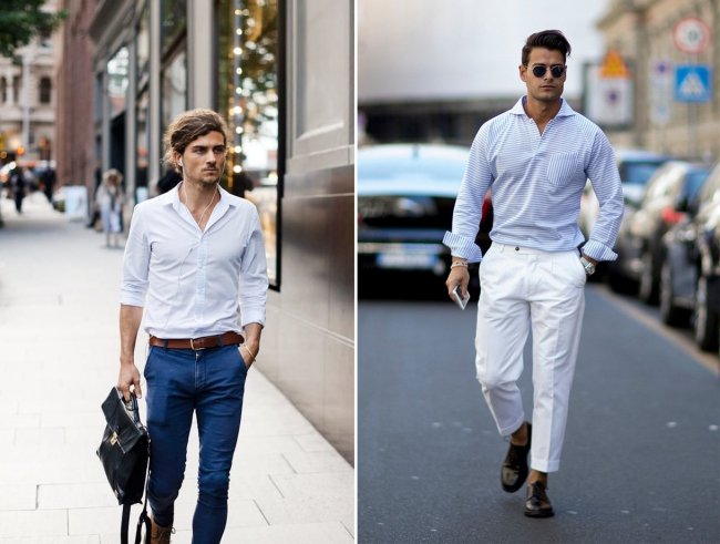Выбор рубашек зависит от того, для каких целей их носят. Для деловой встречи и рабочей обстановки следует отдать предпочтение светлым однотонным моделям, сдержанному узору или клетке без изысков. Образ легко дополняется джинсами, деловыми брюками, классической обувью или кроссовками.