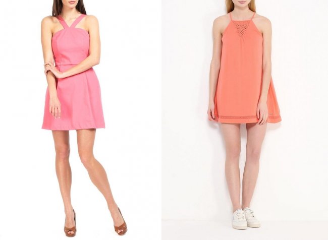Летние платья с таким видом ворота смотрятся элегантно и романтично, отлично подчеркивают линию плеч. Сарафаны подходят и для праздничного выхода, и для романтического свидания. За счет аккуратно переброшенных через шею лямок создается эффект легкости. Такое платье подходит любительницам выделиться из толпы.