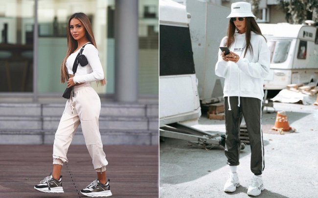 Самыми трендовыми образами горячей поры станут, во-первых, зауженные трикотажные платья с модными сникерсами, во-вторых, строгие классические брюки с олимпийками и кроссовками.