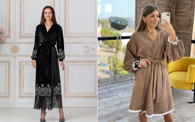 Платье на запах, выполненное из бархата, сразит вас своей изысканностью и лаконичностью. Именно благодаря бархатным версиям этих платьев, вы сможете создать превосходные деловые луки, а также торжественные, нарядные образы. Такие платья могут быть дополнены кружевами, вышивкой или бахромой.