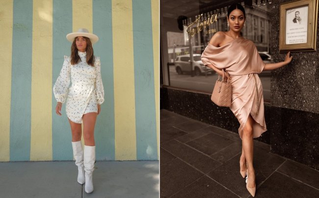 Если вы собираетесь на романтический ужин, то лучше всего выбрать короткое шелковое платье с нижним запахом. А на вечеринку можно смело надеть яркое платье с пайетками.