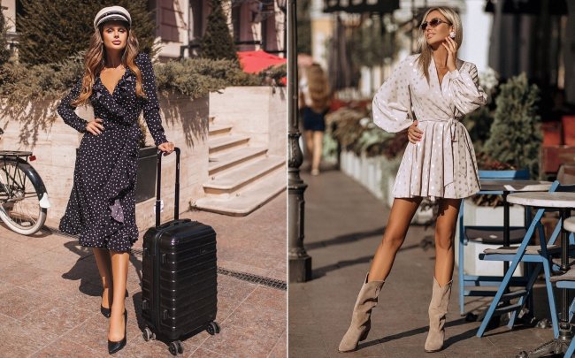 В 2023 году особенно модными будут платья с запахом в гороховый принт. Модницы по достоинству оценят такое предложение дизайнеров.