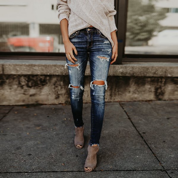 Дерзкой тенденцией станут рваные модели. Разрезы могут размещаться в области колен или бёдер. Удачным станет сочетание с необработанным краем штанин.