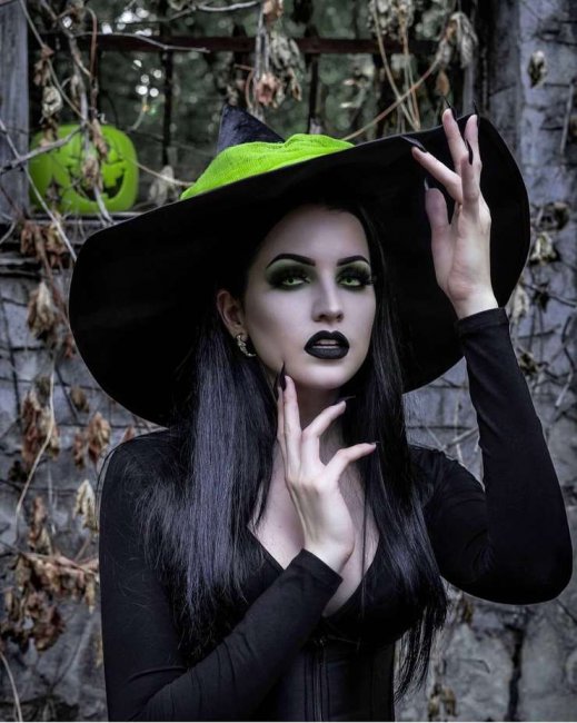 «Для перевоплощения в ведьму нарисуйте на лице или руках древние руны, можно приклеить к костюму пауков, змей. Используйте парик, длинные ногти, колпак. Если захочется, можно приклеить горбатый длинный нос и бородавки, купить кубок для зеленого зелья. Макияж глаз усиливаем подводкой или темными тенями. Нарисуйте несколько морщин на лице коричневым карандашом, обязательно растушевывайте линии кистью для правдоподобности», — советует стилист.