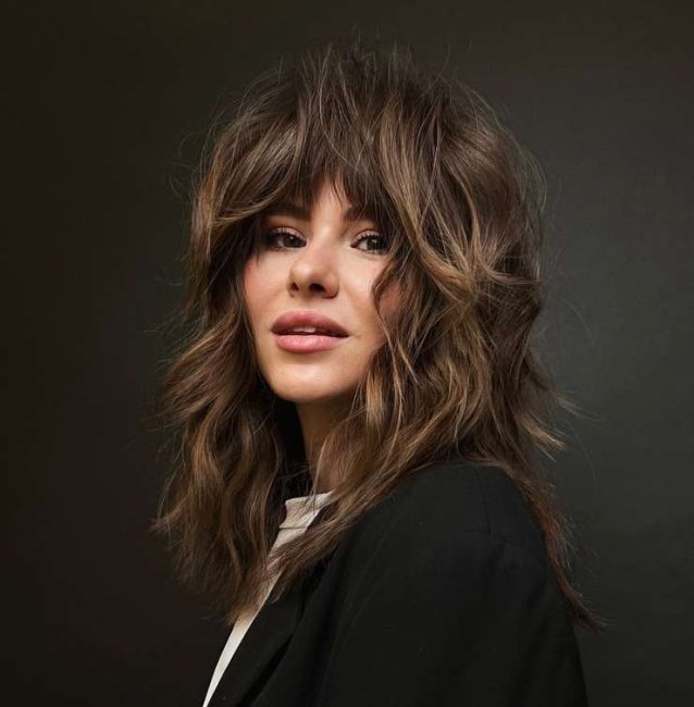 Эта стрижка чем-то напоминает укороченный каскад, правда выдает шегги объемная челка. Стилист: «Для пересушенных волос шегги подходит идеально, так как тут важно акцентировать внимание на растрепанных концах. Да и отрастает шегги красиво». Для девушек, которые не хотят сильно избавляться от длины, такая стрижка подойдет идеально.
