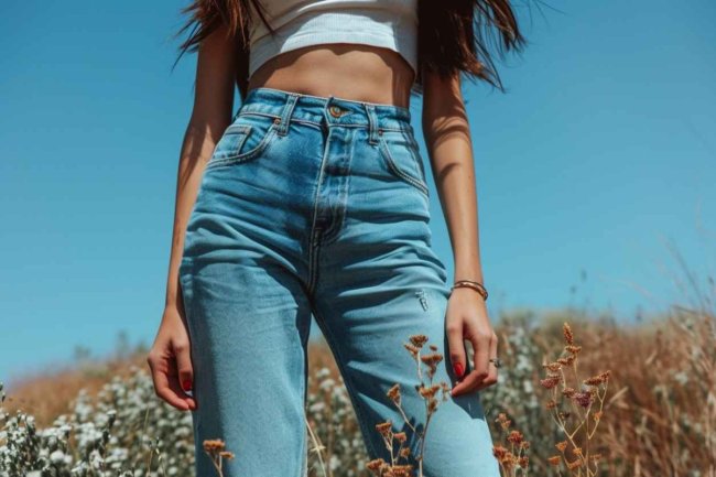 - Джинсы – практичная одежда, которая идеально подойдет для повседневной носки. В зависимости от особенностей фигуры можно подобрать такие фасоны как «мом», «трубы», «баллоны», «клеш», «оверсайз». При выборе расцветки рекомендуется отдавать предпочтение классической сине-голубой палитре или универсальным белым, серым, черным, бежевым оттенкам.