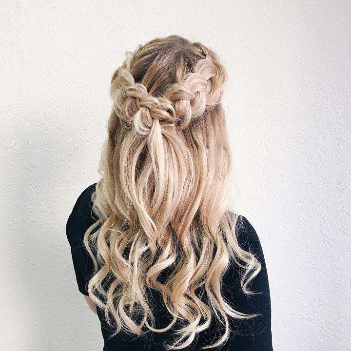 Разделите волосы пробором, заплетите французские косы от висков, оставив их свободными. Расчешите остальные пряди для легкой волны. Украсьте тонкими резинками в тон волосам или серебряными бусинами для зимнего блеска. Подходит для ужина при свечах или прогулки по заснеженному парку.